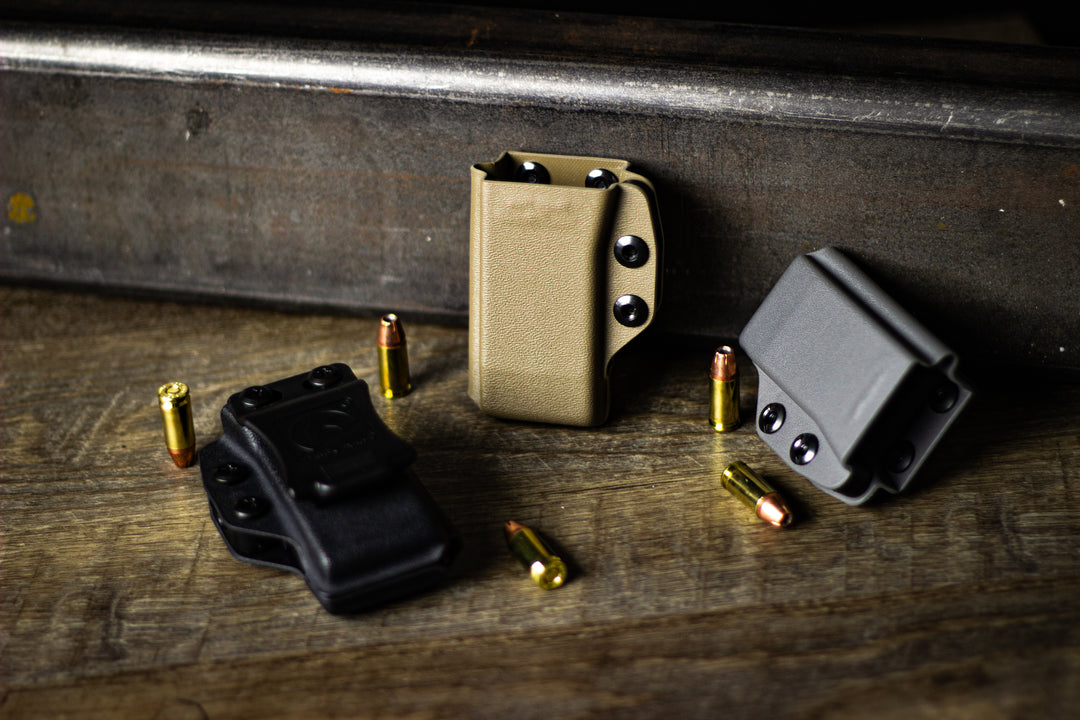 The Kydex Pistol Magazine Carrier line supports single, staggered, and double stack magazine designs! It is reversible for both left and right hand shooters, can be worn either inside or outside the waistband, and features adjustable retention via one simple set screw. It’s the truly go anywhere, do anything mag carrier, whether you need it for everyday carry or for competition.