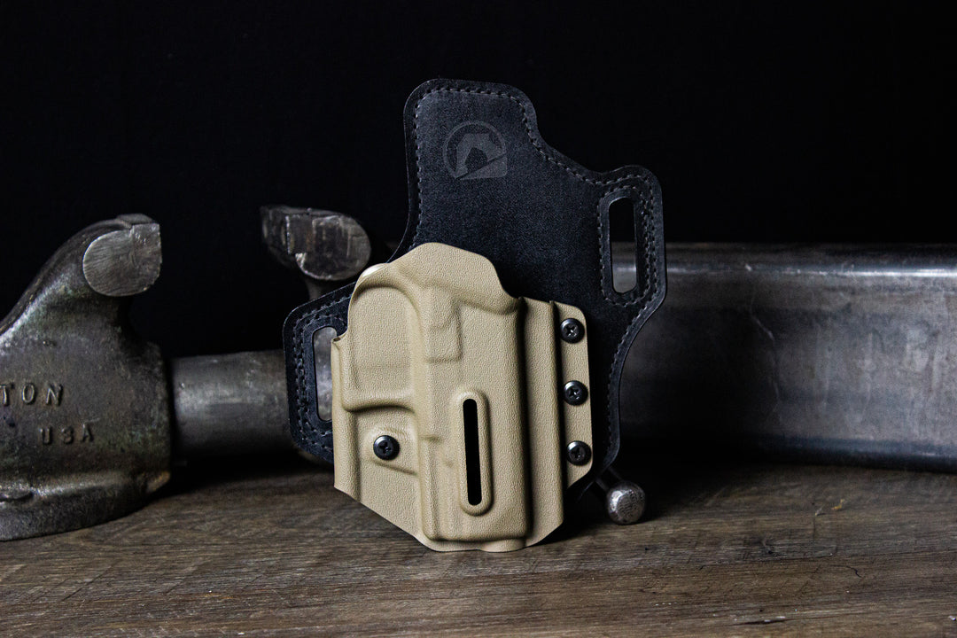 Our flagship holster, the Protos-M, is the result of countless hours of design, prototyping and testing resulting in the best hybrid holster on the market today. Our patented ¾ hybrid shell gives the perfect blend of adjustable, repeatable and safe retention usually reserved for full Kydex holsters. With Kydex wrapping the trigger guard you never have to worry about the backer collapsing in on itself, making it safer than traditional hybrids.