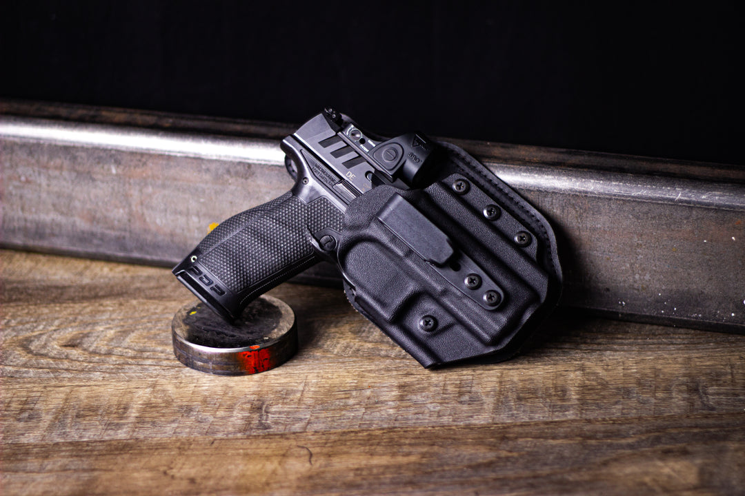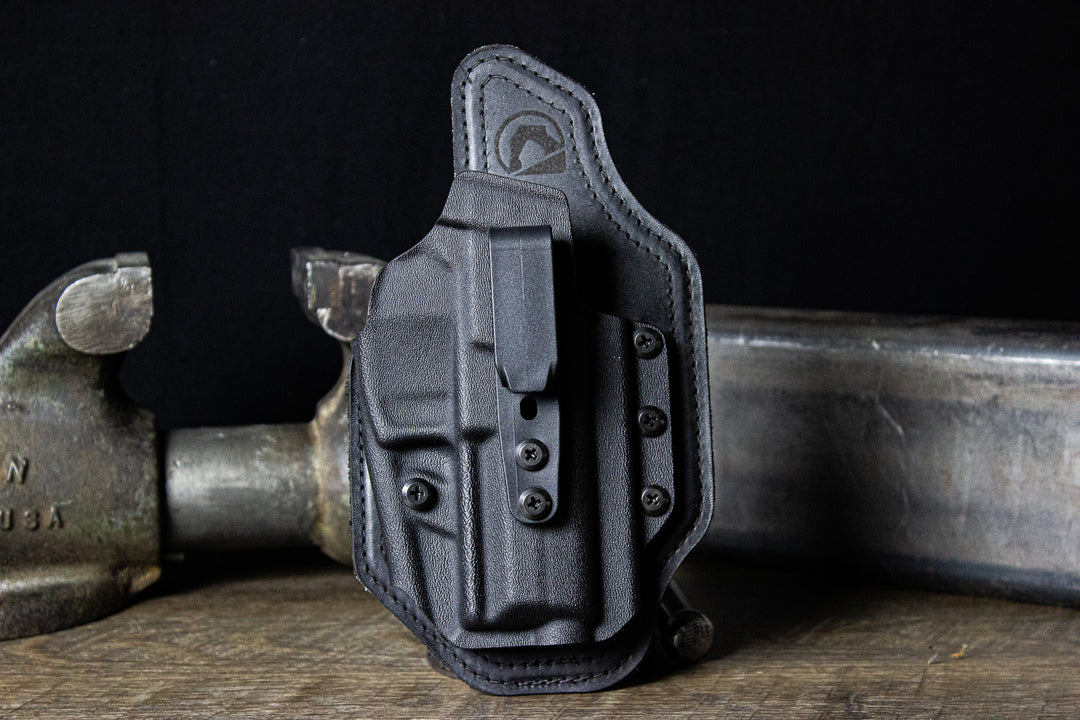 The Single Clip Protos-M® is numbered among the smallest hybrid holsters in the industry. Each holster is custom designed for your particular handgun, which reduces bulk and increases comfort. You will find that our adjustable retention and flared mouth ensure safe and quick access to your handgun. Due to its compact size and single easy-on click this holster can be worn anywhere on the belt line, from traditional strong side carry to appendix.