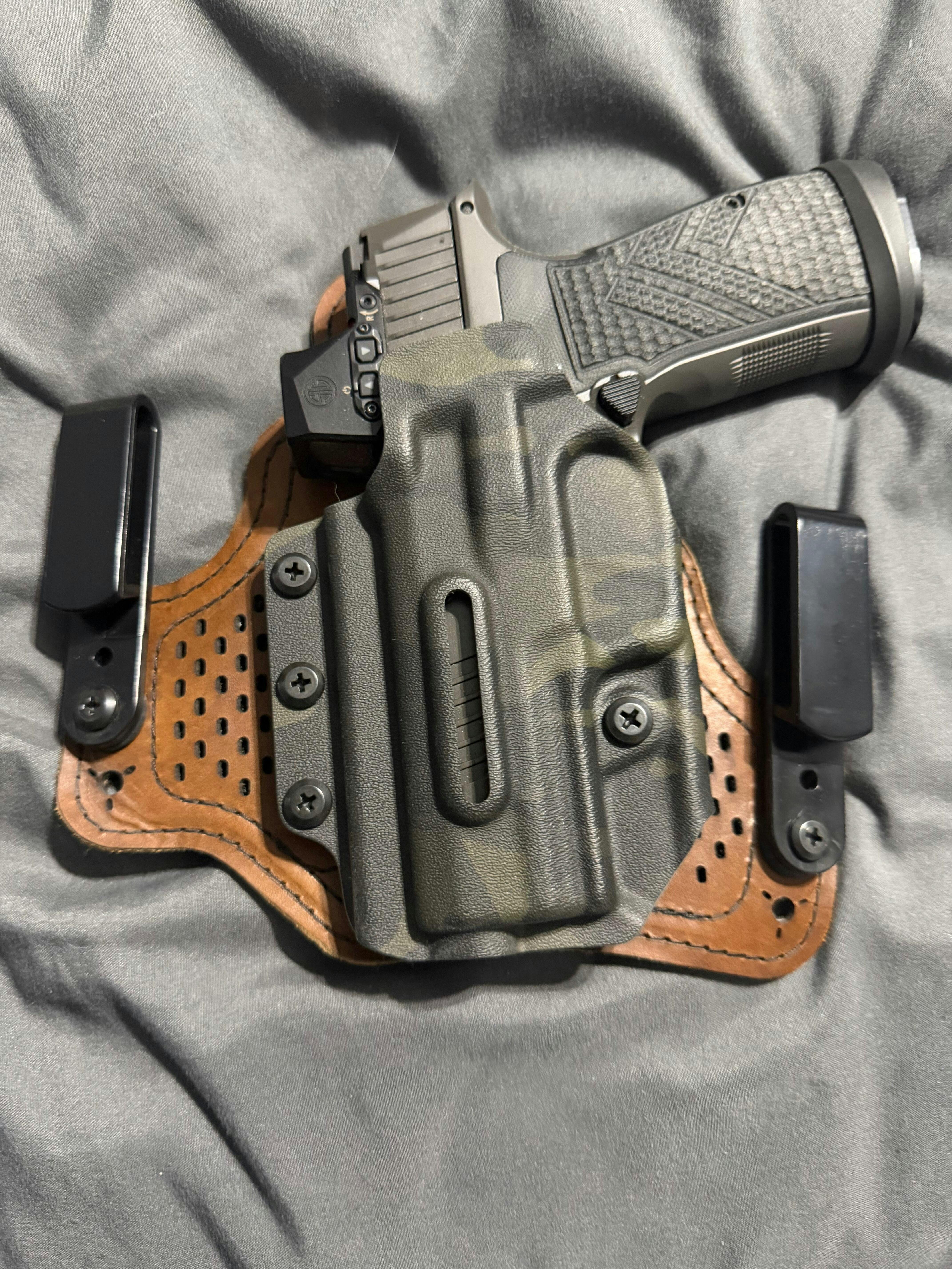 The Protos-M Dual Clip IWB Holster is the ultimate solution for those who prioritize comfort and stability in their everyday carry. The breathable, padded backer and dual-clip design work together to eliminate pressure points, improve airflow, and deliver all-day wearability—whether you’re braving summer heat or layering up in colder weather. Combine that with Black Arch’s modular 3/4 shell, and you get a holster that’s as adaptable as it is comfortable.