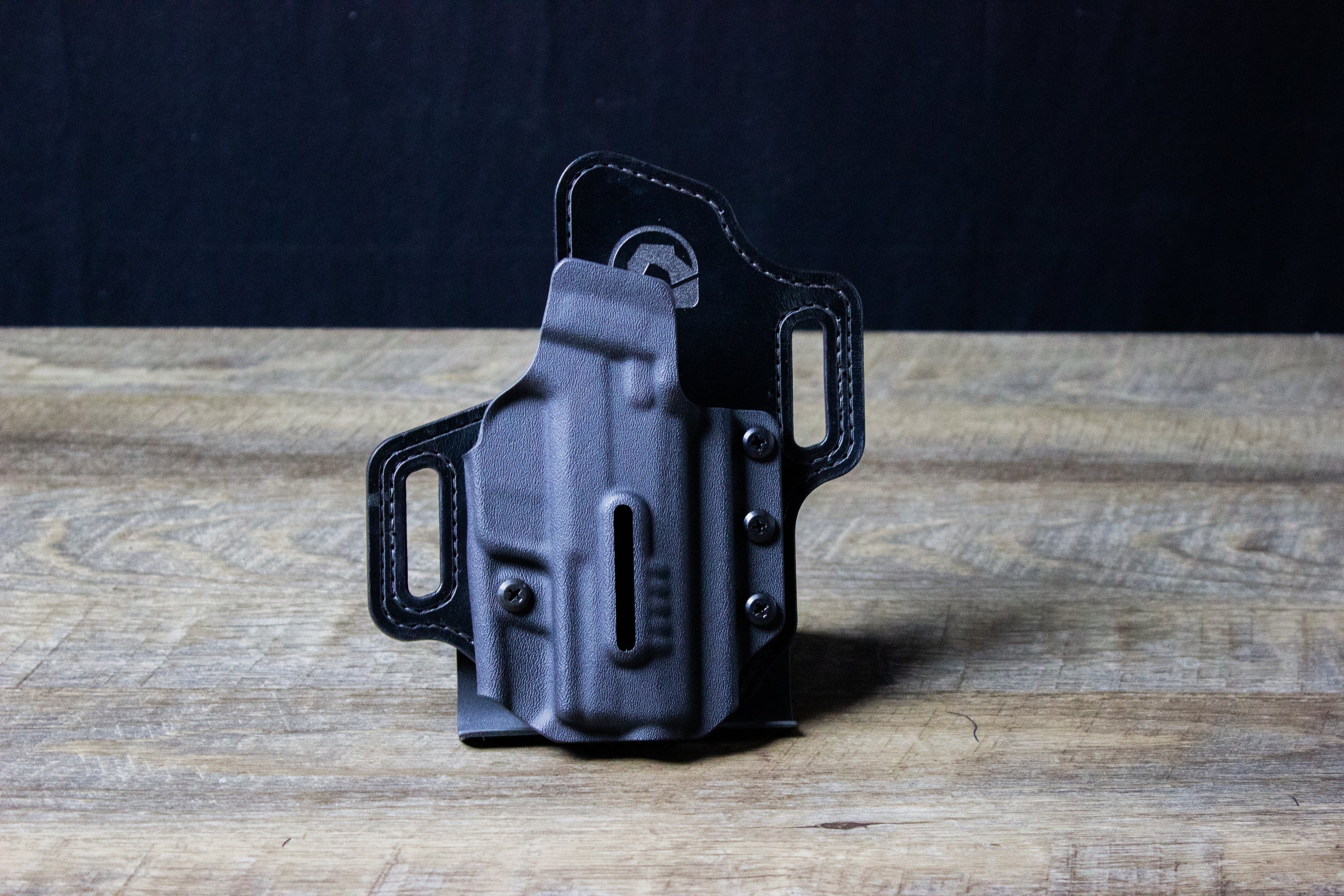 The Protos-M OWB Holster from Black Arch Holsters delivers exceptional comfort, durability, and firearm protection for outside-the-waistband carry. Built around a 3/4 shell construction, this holster provides full trigger guard coverage and adjustable retention, ensuring your firearm stays secure and ready when you need it.