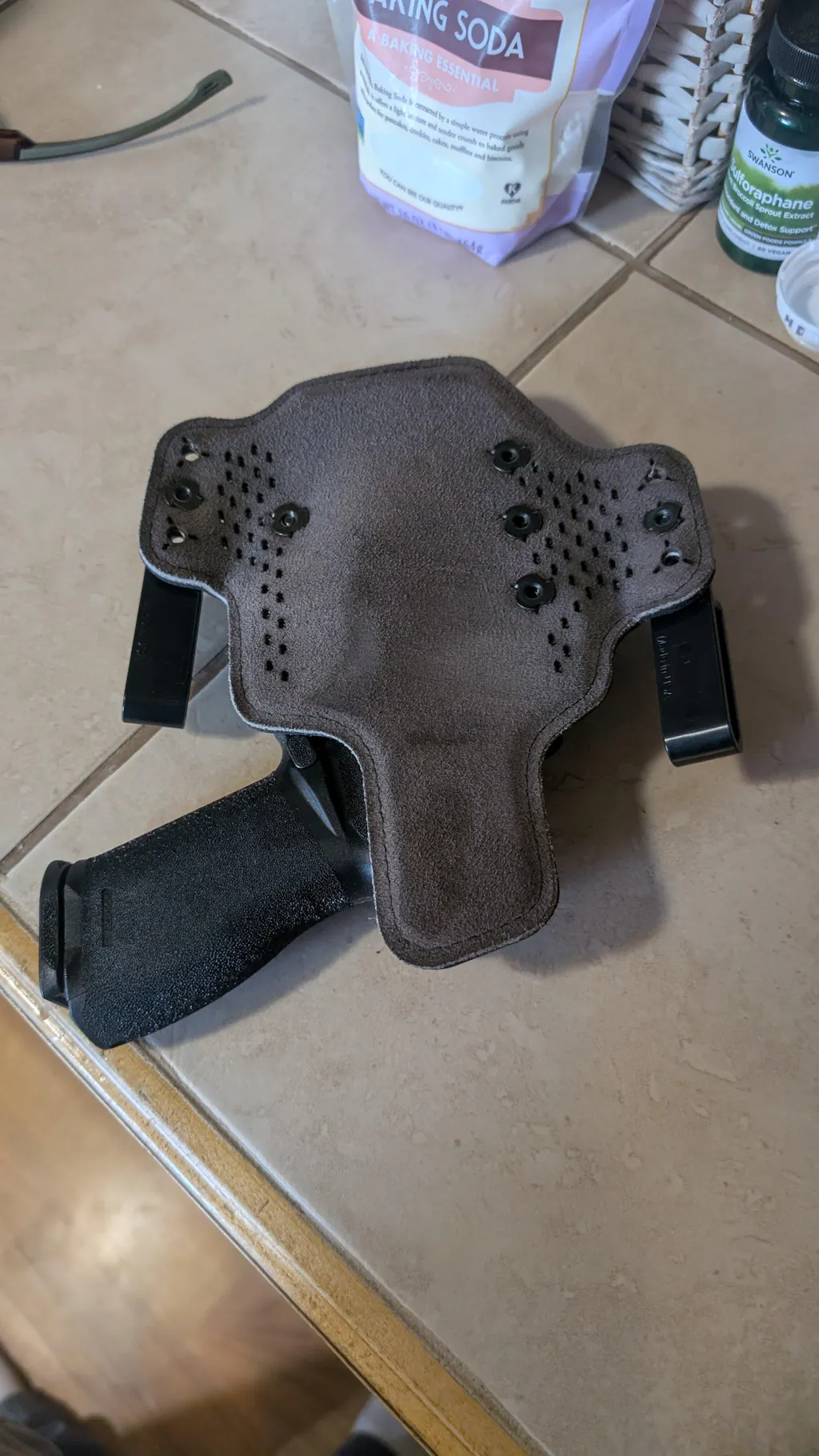 - No Bulk: Thinned leather backer to mitigate bulk and aid in concealment.